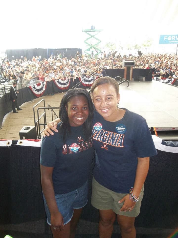 In 2012, there was an Obama rally in Charlottesville. My friend Nikardi and I wore our UVA gear. We were in line and asked if we were students. When we said yes, were chosen to sit right behind President Obama on stage. We were so excited and were able to get some great pictures. It was especially memorable because it was the first Presidential election I was able to vote in.